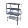 Entrepaños en forma de canal de lamina de acero inoxidable calibre No. 20 tipo marimba, acabado pulido.
